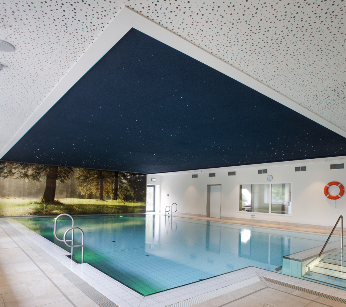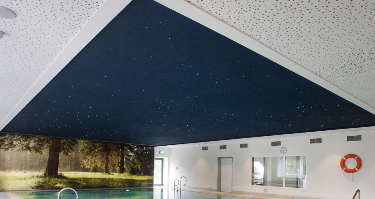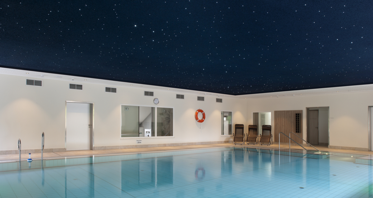 Umgeben von der ursprünglichen Natur des Thüringer Waldes, nahe der Goethestadt Ilmenau befindet sich das idyllisch gelegene Berg- und Jagdhotel Gabelbach. Seit 2014 erfährt es eine Modernisierung, die heutigen Komfort erzielt und gleichzeitig den historischen Charme der Architektur erhält und den Glanz vergangener Tage wiedererweckt. Das neue großzügigen „Gabelbach Spa“ erregt dabei mit seiner außergewöhnlichen Deckengestaltung Aufsehen: Über dem Becken funkelt das Abbild eines nächtlichen Sternenhimmels.