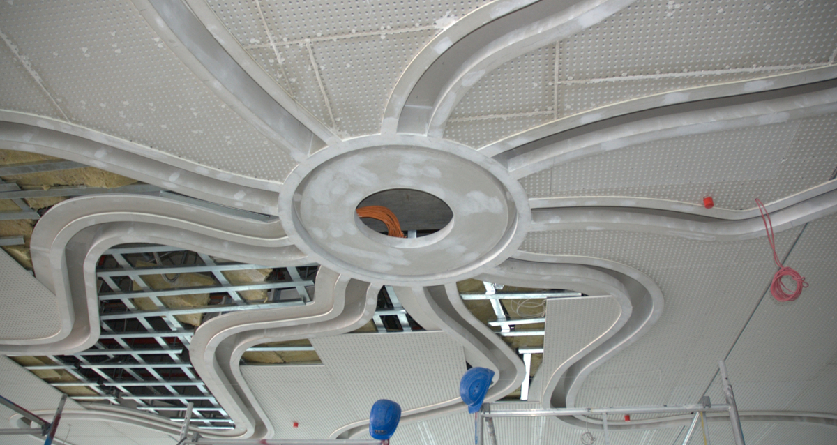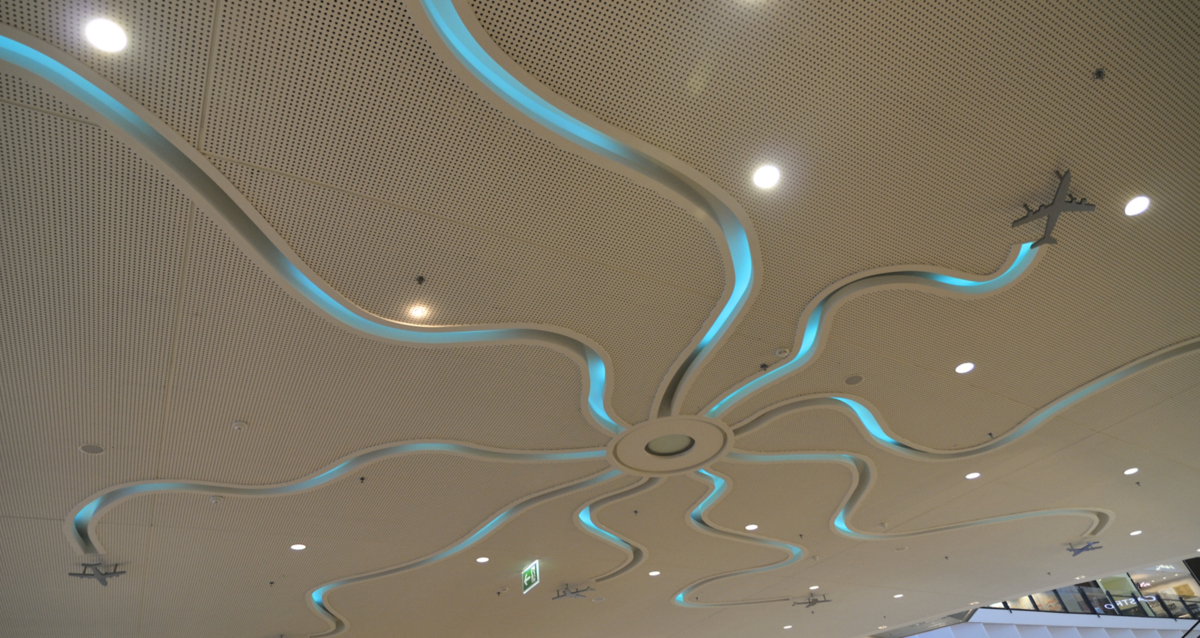 Das Shoppingcenter LOOP 5 in Weiterstadt besticht durch unverwechselbares Ambiente und Größe: Der im Herbst 2009 eröffnete Komplex misst 320 mal 150 m. Auf 105.000 qm Bruttogeschoßfläche erwarten die Besucher 177 Geschäfte und ein attraktiver Gastronomiebereich. Das LOOP 5 setzt voll auf Luftfahrt: „Loop“ nimmt Bezug auf die Nähe zum Frankfurter Flughafen sowie zum Kontrollzentrum der Europäischen Weltraumorganisation ESA in Darmstadt. Die „5“ verweist auf die unmittelbar daran vorbeiführende Autobahn A5. Der künstlerischen Gestaltung wurden durch Siniat Gips-Formteile jede Menge Freiraum eingeräumt. Das faszinierende Ergebnis: Facettenreiche Formen, von licht umspielte Elemente, emotionale Erlebnisse.